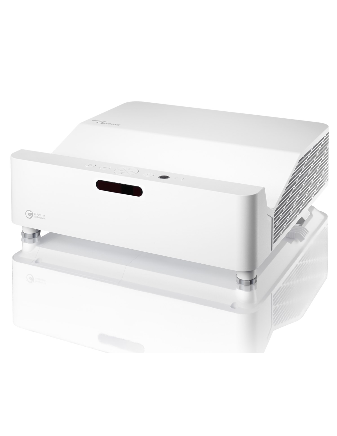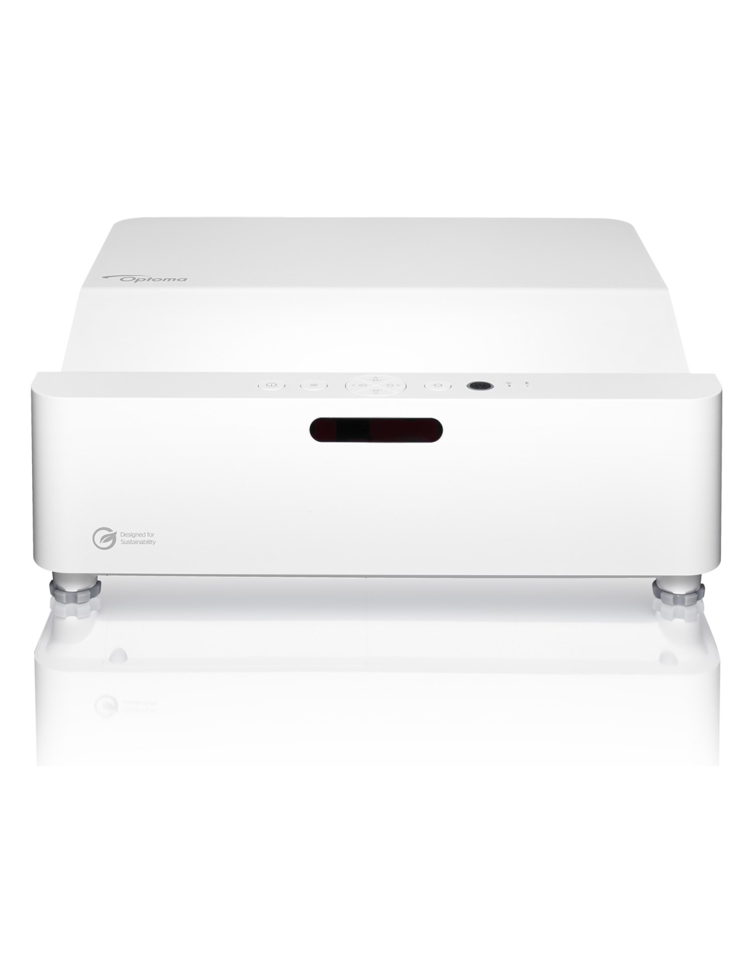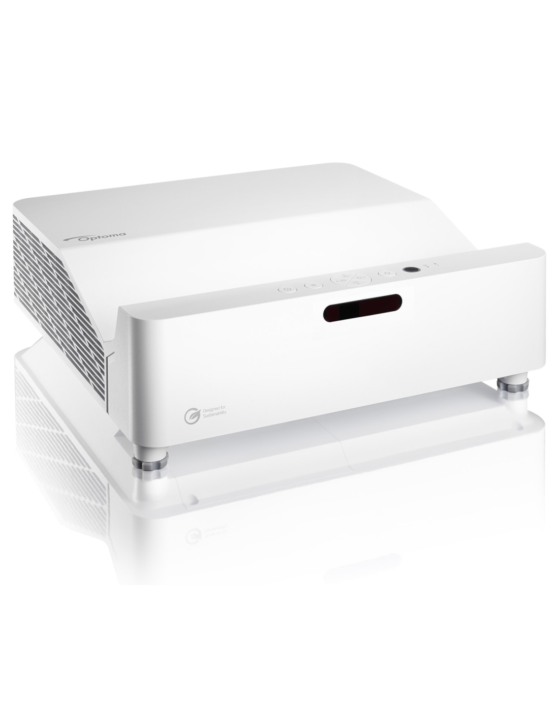 Diseñado con el medio ambiente en mente, el diseño del chasis ecológico está hecho con hasta un 50% de plásticos PCR (Post-Consumer Recycled) y el embalaje contiene hasta un 97% de materiales reciclables.³ Además, el tamaño compacto del producto y del embalaje del proyector Optoma GT3500HDR permite transportar 2 veces más productos por contenedor, lo que resulta en una logística más eficiente para ayudar a reducir aún más las emisiones de carbono.